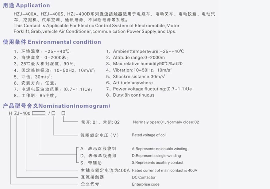 HZJ-400A/S/D-4801直流接触器